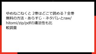 ゆめねこねくと ゆめねこねくと 2巻はどこで読める?全巻無料の方法・あらすじ・ネタバレとraw/hitomi/zip/pdfの違法性も比較調査 二度目の人生を異世界で 1巻:異世界転生の壮大な幕開け 異世界ファンタジーの定番を、ユニークな視点で描いた『二度目の人生を異世界で』。原作小説がWEBで累計1億PVを突破した人気作が、コミック版として登場です。94歳で大往生を遂げた主人公が... 2025.10.26 ゆめねこねくと少年マンガ