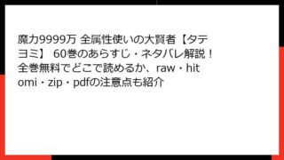 魔力9999万 全属性使いの大賢者【タテヨミ】76巻:圧巻の転生ファンタジー、深まる陰謀の渦中 こんにちは、ファンタジー漫画好きの皆さん! 今日のブログ記事では、人気急上昇中の縦読みコミック「魔力9999万 全属性使いの大賢者【タテヨミ】」...