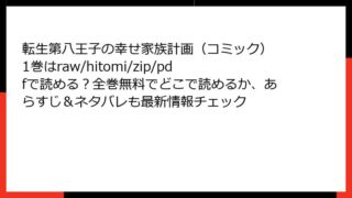 少女マンガ 転生第八王子の幸せ家族計画(コミック) 1巻はraw/hitomi/zip/pdfで読める?全巻無料でどこで読めるか、あらすじ&ネタバレも最新情報チェック 転生第八王子の幸せ家族計画(コミック)1巻:末っ子王子の無自覚愛されストーリー こんにちは、マンガ好きのブロガーです! 今日は、最近話題沸騰中の異世界転生ファンタジーコミック『転生第八王子の幸せ家族計画(コミック)』の1巻について、詳しくあ... 2025.11.08 少女マンガ転生第八王子の幸せ家族計画(コミック)