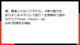 俺、勇者じゃないですから。 俺、勇者じゃないですから。 6巻の魅力をあらすじ&ネタバレで紹介!全巻無料で読めるサイトやraw・hitomi・zip・pdfの危険性も検証 名探偵コナン 82巻の魅力的なあらすじを深掘り! こんにちは、ミステリーマニアの皆さん! 今日のブログでは、青山剛昌先生の不朽の名作『名探偵コナン』の82巻を徹底的に掘り下げてみます。この巻は、シリーズの核心に迫るミステリーが満載で、読むた... 2025.11.09 俺、勇者じゃないですから。少年マンガ