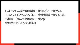 BLマンガ しまちゃん家の番事情 1巻はどこで読める?あらすじやネタバレ、全巻無料で読む方法も検証(rawやhitomi、zip/pdf利用のリスクも解説) しまちゃん家の番事情 1巻 詳細あらすじ&見どころ徹底解説 オメガバースの新星、待望の1巻! 「番になっても、俺たちは家族だよね?」――甘くて切なくて、ちょっとエッチな“兄弟”の物語がここに始まる。 作品基本情報 タイトル:しまちゃん家の番... 2025.11.15 BLマンガしまちゃん家の番事情