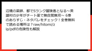 少年マンガ 辺境の薬師、都でSランク冒険者となる~英雄村の少年がチート薬で無自覚無双~ 6巻のあらすじ・ネタバレをチェック!全巻無料で読める場所は?raw/hitomi/zip/pdfの危険性も解説 名探偵コナン 82巻 この漫画・コミックの、あらすじを詳しく。単一のの見出しタグから始めて、ブログ記事形式で出力して。複数のタグを使用して、読み応えがあるように。HTMLで出力。やなどの箇条書きのHTMLタグや、tableタグも使用してOK... 2025.11.15 少年マンガ辺境の薬師、都でSランク冒険者となる~英雄村の少年がチート薬で無自覚無双~