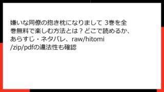 女性マンガ 嫌いな同僚の抱き枕になりまして 19巻の全巻無料情報まとめ!どこで読める?あらすじ・ネタバレとraw/hitomi/zip/pdfの利用に関する注意点も網羅