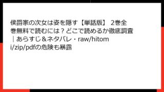 侯爵家の次女は姿を隠す【単話版】 侯爵家の次女は姿を隠す【単話版】 3巻のあらすじ&ネタバレは?全巻無料でどこで読めるか&raw/hitomi/zip/pdf利用のリスクも一緒に検証