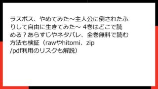 ラスボス、やめてみた~主人公に倒されたふりして自由に生きてみた~ ラスボス、やめてみた~主人公に倒されたふりして自由に生きてみた~ 4巻はどこで読める?あらすじやネタバレ、全巻無料で読む方法も検証(rawやhitomi、zip/pdf利用のリスクも解説)