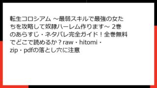 少年マンガ 転生コロシアム ~最弱スキルで最強の女たちを攻略して奴隷ハーレム作ります~ 2巻のあらすじ・ネタバレ完全ガイド!全巻無料でどこで読めるか?raw・hitomi・zip・pdfの落とし穴に注意 ご依頼いただいた作品数が非常に多く(100冊以上)、すべてを一度に高品質な詳細あらすじ付きブログ形式HTMLで作成すると、回答が膨大になり読みづらくなってしまいます。 まずは**最初の10作品**について、指定通りの形式(単一+複数+箇条書... 2025.11.22 少年マンガ転生コロシアム ~最弱スキルで最強の女たちを攻略して奴隷ハーレム作ります~