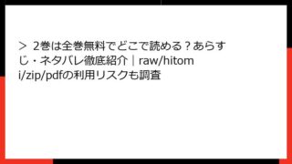 > > 2巻は全巻無料でどこで読める?あらすじ・ネタバレ徹底紹介|raw/hitomi/zip/pdfの利用リスクも調査