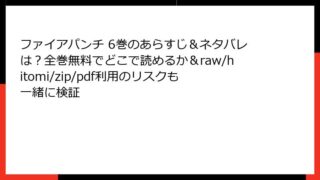 ファイアパンチ ファイアパンチ 6巻のあらすじ&ネタバレは?全巻無料でどこで読めるか&raw/hitomi/zip/pdf利用のリスクも一緒に検証 ファイアパンチ 6巻 あらすじ 藤本タツキのダークファンタジー漫画『ファイアパンチ』の6巻は、物語の転換点となる重要な巻です。氷河期の世界で祝福者たちの運命が交錯し、アグニの内面的な葛藤が深く描かれます。ここでは、巻全体の詳細なあらすじを、... 2025.11.23 ファイアパンチ少年マンガ