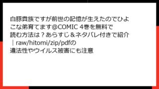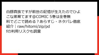 少女マンガ 白豚貴族ですが前世の記憶が生えたのでひよこな弟育てます@COMIC 1巻のあらすじ・ネタバレをチェック!全巻無料で読める場所は?raw/hitomi/zip/pdfの危険性も解説