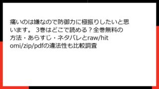 少年マンガ 痛いのは嫌なので防御力に極振りしたいと思います。 3巻はどこで読める?全巻無料の方法・あらすじ・ネタバレとraw/hitomi/zip/pdfの違法性も比較調査