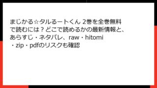 まじかる☆タルるートくん まじかる☆タルるートくん 2巻を全巻無料で読むには?どこで読めるかの最新情報と、あらすじ・ネタバレ、raw・hitomi・zip・pdfのリスクも確認