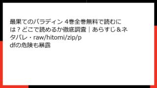 少年マンガ 最果てのパラディン 4巻全巻無料で読むには?どこで読めるか徹底調査|あらすじ&ネタバレ・raw/hitomi/zip/pdfの危険も暴露 最果てのパラディン 4巻 詳細あらすじ:荒廃した世界での出会いと絆 『最果てのパラディン』は、異世界に転生した少年ウィリアム・G・メイズ(ウィル)が、神託を受けながら冒険を繰り広げる王道ハイファンタジー漫画です。4巻では、故郷を離れたウィル... 2025.12.14 少年マンガ最果てのパラディン