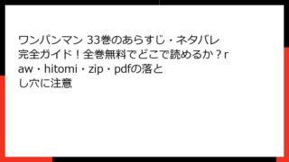 ワンパンマン ワンパンマン 33巻のあらすじ・ネタバレ完全ガイド!全巻無料でどこで読めるか?raw・hitomi・zip・pdfの落とし穴に注意 ワンパンマン 33巻のあらすじ詳細 全体の概要 ワンパンマン 33巻は、原作ONE、作画村田雄介による人気漫画の最新巻で、タイトルは「二乗」(英語版では「Power Squared」)。この巻は、物語のハイライトであるサイタマとガロウの激突... 2026.01.03 ワンパンマン少年マンガ