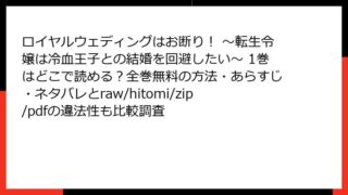 ロイヤルウェディングはお断り! ~転生令嬢は冷血王子との結婚を回避したい~ ロイヤルウェディングはお断り! ~転生令嬢は冷血王子との結婚を回避したい~ 1巻はどこで読める?全巻無料の方法・あらすじ・ネタバレとraw/hitomi/zip/pdfの違法性も比較調査