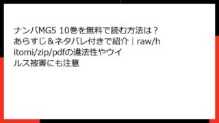 ナンバMG5 ナンバMG5 10巻を無料で読む方法は?あらすじ&ネタバレ付きで紹介|raw/hitomi/zip/pdfの違法性やウイルス被害にも注意 範馬刃牙 15巻の詳しいあらすじ グラップラー刃牙シリーズの続編である範馬刃牙の15巻は、地下闘技場での激闘が続く中、主人公の範馬刃牙がさまざまな強敵と対峙する様子を描いています。この巻では、刃牙の父である範馬勇次郎との対決がさらに深みを増... 2026.01.30 ナンバMG5少年マンガ