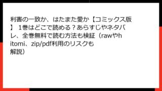 BLマンガ 利害の一致か、はたまた愛か【コミックス版】 1巻はどこで読める?あらすじやネタバレ、全巻無料で読む方法も検証(rawやhitomi、zip/pdf利用のリスクも解説) 利害の一致か、はたまた愛か【コミックス版】1巻 - 詳細あらすじと魅力解説 作品の概要 うぐお先生のデビューコミックスとなる本作は、BLジャンルの魅力が詰まった1巻完結作品です。美しい外見にしか興味を持てない会社員・丸樋と、顔だけは超絶美形... 2026.01.30 BLマンガ利害の一致か、はたまた愛か【コミックス版】