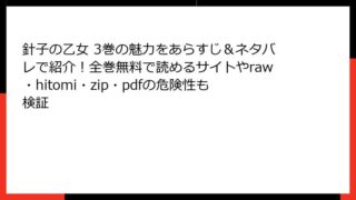少年マンガ 針子の乙女 3巻の魅力をあらすじ&ネタバレで紹介!全巻無料で読めるサイトやraw・hitomi・zip・pdfの危険性も検証 針子の乙女 3巻のあらすじを詳しく解説 人気の異世界ファンタジー漫画「針子の乙女」の3巻は、主人公ユイの運命が大きく動き出す巻です。針と糸を武器に、加護縫いの力で世界を変えていく物語がさらに深みを増します。ここでは、ネタバレを含む詳細なあら... 2026.02.05 少年マンガ針子の乙女