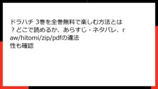 ドラハチ ドラハチ 3巻を全巻無料で楽しむ方法とは?どこで読めるか、あらすじ・ネタバレ、raw/hitomi/zip/pdfの違法性も確認 ドラハチ 3巻 あらすじ詳細 プロ野球を舞台にした熱血サクセスストーリー『ドラハチ』の3巻では、主人公の黒金八郎が所属する弱小球団カーボンズのペナントレースが本格的に描かれます。開幕戦の勝利から始まる希望が、予想外のトラブルで一転する展開が... 2026.02.13 ドラハチ少年マンガ