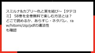 BLマンガ スミルナ&カプリ~仇と実を結び~【タテヨミ】 58巻を全巻無料で楽しむ方法とは?どこで読めるか、あらすじ・ネタバレ、raw/hitomi/zip/pdfの違法性も確認 この漫画・コミックの、ネタバレ情報を詳しく。単一のの見出しタグから始めて、ブログ記事形式で出力して。複数のタグを使用して、読み応えがあるように。HTMLで出力。やなどの箇条書きのHTMLタグや、tableタグも使用してOK。ただし、リンクや... 2026.02.16 BLマンガスミルナ&カプリ~仇と実を結び~【タテヨミ】