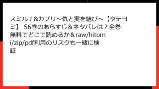 BLマンガ スミルナ&カプリ~仇と実を結び~【タテヨミ】 56巻のあらすじ&ネタバレは?全巻無料でどこで読めるか&raw/hitomi/zip/pdf利用のリスクも一緒に検証 腐食人【タテヨミ】 9巻の詳細なあらすじ 腐食人シリーズの9巻では、終末世界でのサバイバルがさらに激化します。ゾンビのような腐食人が蔓延る中、主人公フミヤの苦難が描かれます。この巻は、グループ内の人間関係が焦点となり、信頼と裏切りが交錯する... 2026.02.16 BLマンガスミルナ&カプリ~仇と実を結び~【タテヨミ】