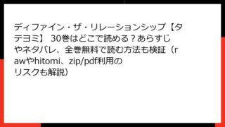 BLマンガ ディファイン・ザ・リレーションシップ【タテヨミ】 30巻はどこで読める?あらすじやネタバレ、全巻無料で読む方法も検証(rawやhitomi、zip/pdf利用のリスクも解説)