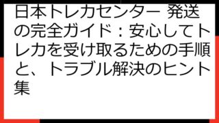 日本トレカセンター買取を徹底解説!高価買取の秘訣から注意点まで 日本トレカセンターでのトレカ買取について、興味をお持ちのあなたへ この記事では、日本トレカセンターでの買取を検討している方が知りたい情報を、網羅的に解説します。 高価買取を実現...