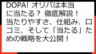 DOPA! オリパは詐欺?危険性から安全な利用法まで徹底解説 DOPA! オリパの利用を検討しているけれど、「詐欺」や「危ない」といったキーワードが気になっているあなたへ この記事では、DOPA! オリパに関する様々な疑問を解決し、安全に楽...