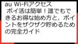 au Wi-Fiアクセス ポイ活の全体像を理解し、スムーズなスタートを切りましょう。