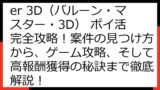 このガイドを読めば、「Balloon Master 3D」でのポイ活を最大限に楽しむことができるでしょう。