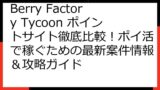 ゲームの基本から、報酬アップのコツ、上級者向けの戦略まで、Berry Factory Tycoonのポイ活を成功させるために必要な情報を網羅しています。