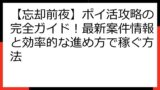 1. 【忘却前夜】ポイ活案件徹底比較!おすすめポイントサイトと高額報酬を狙う攻略法