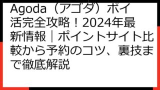 Agoda(アゴダ) Agoda(アゴダ)ポイ活完全攻略!2024年最新情報|ポイントサイト比較から予約のコツ、裏技まで徹底解説