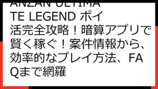 暗算アプリ ANZAN ULTIMATE LEGEND ポイ活徹底比較!ポイントサイトの報酬、攻略法、注意点 「暗算アプリ ANZAN ULTIMATE LEGEND」は、楽しみながら暗算力を鍛えられる人気の脳トレアプリです。 この記事では...