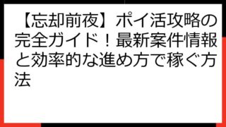 【忘却前夜】ポイ活案件徹底比較!おすすめポイントサイトと高額報酬を狙う攻略法 「忘却前夜」でポイ活に挑戦したいあなたへ。 この記事では、「忘却前夜」のポイ活案件について、現在確認できる情報から将来の展望、そしておすすめのポイントサイトまでを...