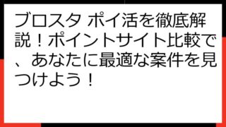 ブロスタ ブロスタ ポイ活を徹底解説!ポイントサイト比較で、あなたに最適な案件を見つけよう!