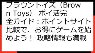 ブラウントイズ(Brown Toys)ポイ活完全ガイド:ポイントサイト比較と攻略情報 ブラウントイズ(Brown Toys)で、楽しくポイ活をしたいあなたへ! この記事では、ブラウントイズのポイ活案件について、徹底的に解説します。 現在の案...