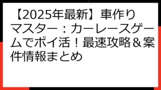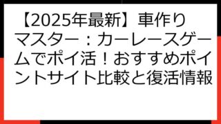 【2025年最新】車作りマスター:カーレースゲームでポイ活!おすすめポイントサイト徹底比較と将来性 「車作りマスター:カーレースゲーム」というキーワードで、ポイ活案件やおすすめのポイントサイトをお探しですか? この記事では、現在ポイ活案件が...