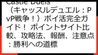 Castle Duels(キャッスルデュエル) ポイ活完全攻略! 報酬獲得への道標 Castle Duels(キャッスルデュエル:PvP戦争!)は、戦略性と奥深さで人気のモバイルゲームです。 このゲームをプレイしながら、ポイントを貯めてお得...
