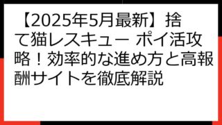 【2025年最新】捨て猫レスキューはポイ活でいくら稼げる?おすすめポイントサイト徹底比較! 「捨て猫レスキュー」のポイ活案件に興味をお持ちのあなたへ。 この記事では、2025年5月時点の最新情報に基づき、ポイ活で「捨て猫レスキュー」からどれ...