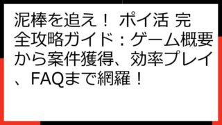 泥棒を追え! ポイ活で狙う!ゲーム案件とおすすめポイントサイト徹底比較 「泥棒を追え!」は、短時間で手軽に楽しめるアドベンチャーゲームです。 選択肢を選びながら泥棒を追跡するスリリングなゲーム性は、ポイ活案件としても注目されています。 この...