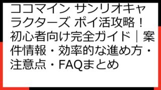 ココマイン サンリオキャラクターズ ポイ活完全ガイド:ポイントサイト徹底比較と攻略情報 このガイドでは、「ココマイン サンリオキャラクターズ」でポイ活を始めるあなたのために、役立つ情報をまとめました。 現在、ポイ活案件は存在しませんが、将来...