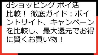 dショッピングを最大限にお得に!ポイントサイト経由の完全攻略ガイド dショッピングでお得にお買い物をしたいあなたへ、ポイントサイトを経由してdポイントをザクザク貯める方法を徹底解説します。 この記事では、dショッピングとポイントサイトを組み...