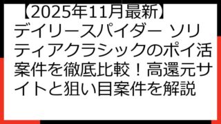 【2025年11月最新】デイリースパイダー ソリティアクラシックのポイ活案件を徹底比較!高還元サイトと狙い目案件を解説 「デイリースパイダー ソリティアクラシック」でポイ活を始めたいあなたへ。 この記事では、2025年11月現在の最新ポイ活...