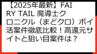 【2025年最新】FAIRY TAIL 魔導士クロニクル(まどクロ)ポイ活案件徹底比較!高還元サイトと狙い目案件は? 『FAIRY TAIL 魔導士クロニクル(まどクロ)』のポイ活案件に興味をお持ちですか? この記事では、リリース直後の最新...