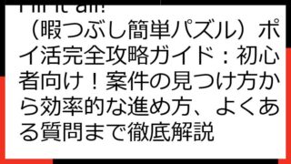 Fill it all!(暇つぶし簡単パズル) ポイ活 完全攻略ガイド:案件獲得から効率的なプレイ方法まで Fill it all!(暇つぶし簡単パズル)は、シンプルながらも奥深いパズルゲームとして、多くのプレイヤーを魅了しています。 この...