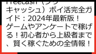 Freecash(フリーキャッシュ)アプリは安全?徹底検証!安全性、評判、そして注意点 Freecash(フリーキャッシュ)アプリは、ゲームをしたりアンケートに答えたりすることでポイントを稼ぎ、現金やギフト券に交換できる人気のポイ活アプリで...