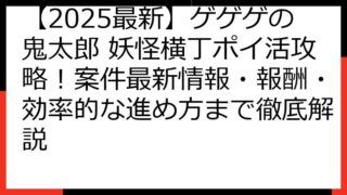 【徹底比較】ゲゲゲの鬼太郎 妖怪横丁ポイ活案件!おすすめポイントサイトとその賢い活用法 「ゲゲゲの鬼太郎 妖怪横丁」をプレイして、お小遣いを稼ぎたいと考えているあなたへ。 数あるポイントサイトで、どの案件が一番お得なのか、迷ってしまいますよ...