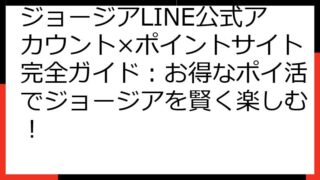 ジョージアをお得に楽しむ!LINE公式アカウント×ポイントサイト徹底攻略ガイド この記事では、「ジョージア LINE公式アカウント」と「ポイントサイト」を組み合わせた、お得なポイ活(ポイント活動)について、詳しく解説していきます。 ジョージ...