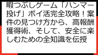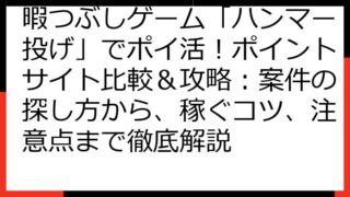 暇つぶしハンマー投げでポイ活!ポイントサイト徹底比較&攻略ガイド さあ、暇つぶしゲーム「ハンマー投げ」で、お小遣いを稼ぐポイ活の世界へ足を踏み入れましょう! この記事では、ゲームを楽しみながらポイントをゲットできる、夢のようなポイ活案件につ...