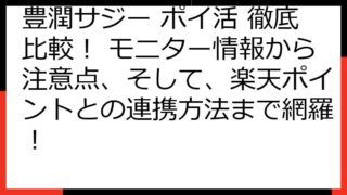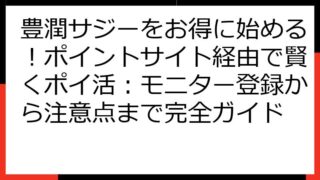 豊潤サジーをお得に始める!ポイントサイト経由で賢くポイ活する方法【2024年最新版】 豊潤サジーをお得に始める方法を、徹底解説します。 ポイントサイトを経由することで、通常よりもお得に豊潤サジーを試すことが可能です。 この記事では、ポイント...